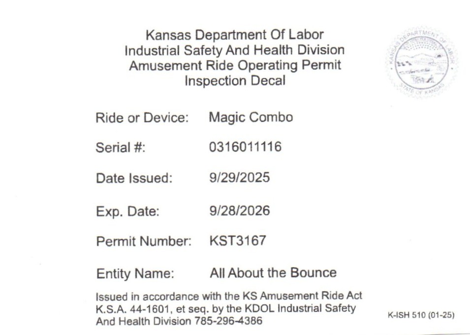 The Magic Slide Combo 15 is: 15’x21’6″x11’4″ up to 1000 pounds or 10 riders at a time.