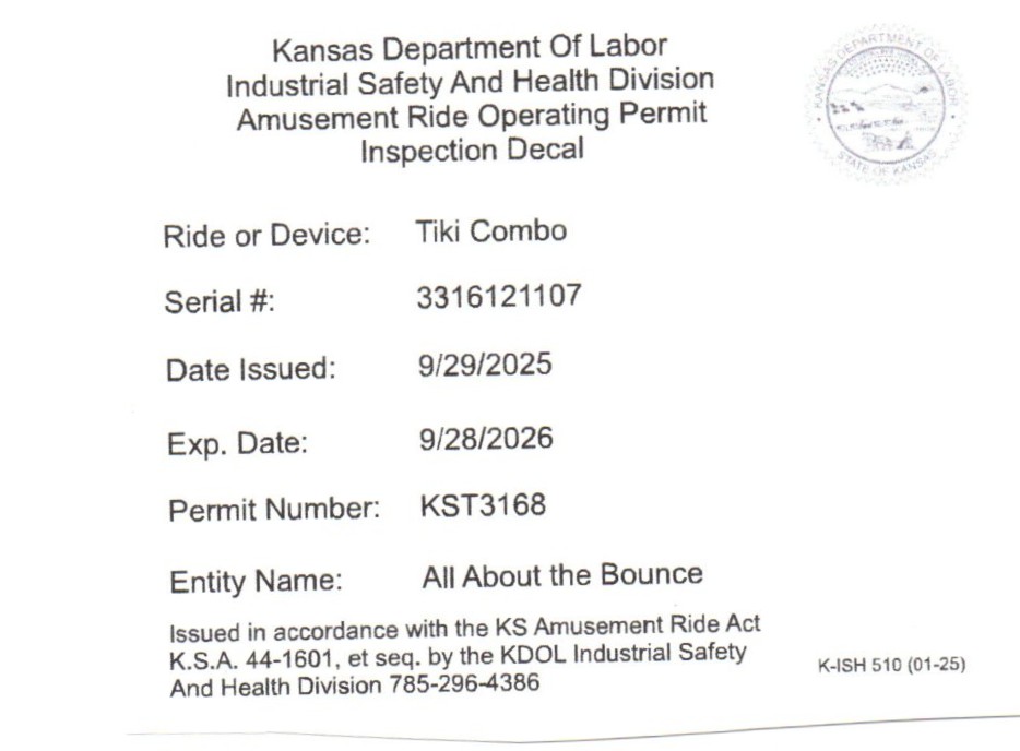 The Tiki Island Slide Combo 15 is 15′ x 21’6″ x 11’4″ up to 1000 pounds or 10 riders at a time.